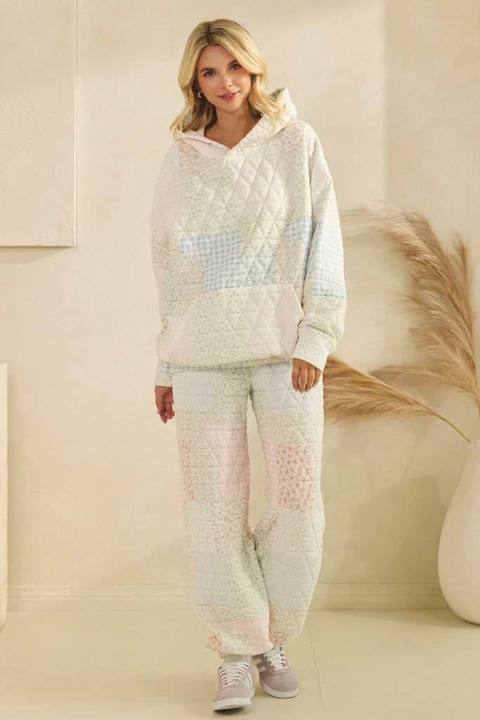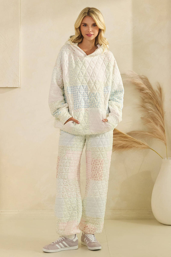 Veveret Quilted lounge pants: Pastel comb