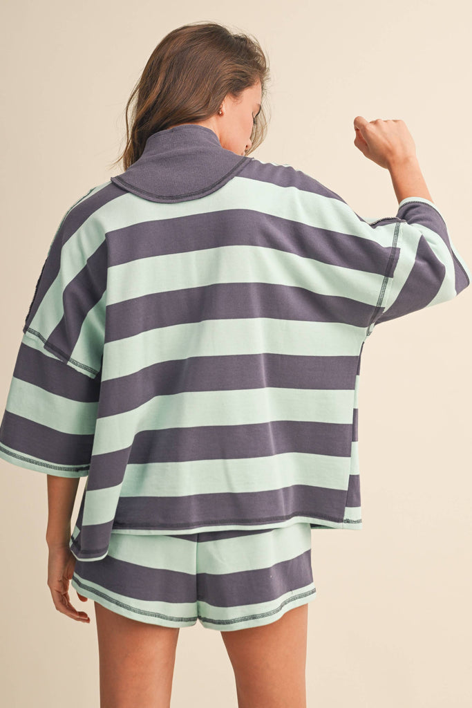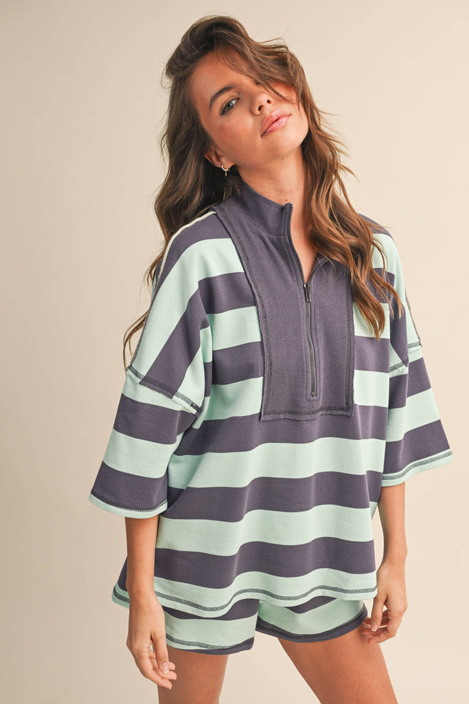STRIPED HALF ZIP TOP AND SHORTS SET: MINT MULTI